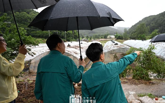 윤석열 대통령은 19일 집중호우로 대규모 피해가 발생한 경북 예천군, 충남 공주시·논산시, 충북 청주시, 전북 익산시 등 13개 지자체를 특별재난지역으로 우선 선포했다. 이도운 대변인은 이날 오전 브리핑을 통해 이 같이 밝히고 “피해를 입으신 분들의 신속한 일상