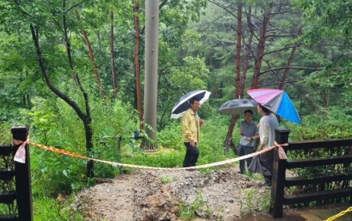 북부지방산림청은 지속되는 호우로 산사태 발생이 우려되는 산사태취약지역 및 다중이용시설에 대하여 재해피해 예방을 위한 긴급 점검을 실시했다고 밝혔다. 이번 점검은 산사태 발생시 대규모 인명피해가 우려되는 다중이용시설, 재해예방시설 설치지역 등에