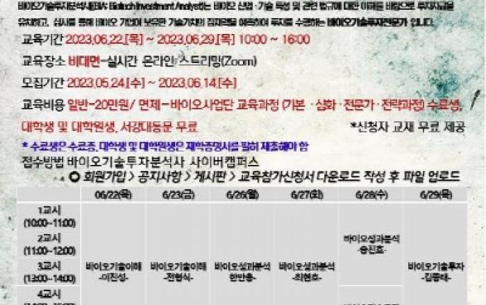 서강대학교 '바이오기술·투자센터(BIOTITC)'는 오는 7월 8일 제24회 바이오기술투자분석사 1급 자격검정을 실시하고, 이를 대비한 교육을 시행한다고 밝혔다. 최근 센터에서 수강생들의 반복 학습을 통해 학습효과를 제고하고, PC와 모바일 모두 가능해 언제 어디서