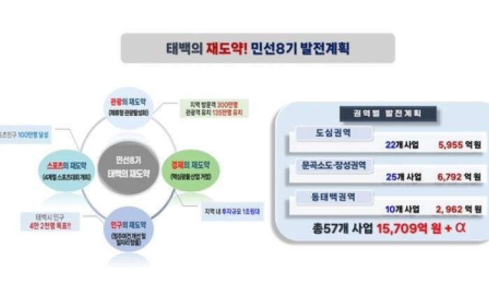 태백시는 지난 25일 '민선 8기 태백시 재도약! 태백시 발전계획'을 수립했다고 밝혔다. 이번 발전계획은 민선 8기 동안 관광의 재도약(체류형 관광의 활성화), 스포츠의 재도약(4계절 스포츠 산업도시 구축), 경제의 재도약(지역특화산업을 통한 경제회복)을 통해 궁극