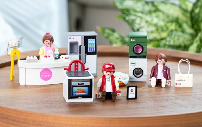 LG전자가 독일 유명 완구 브랜드 ‘플레이모빌(Playmobil)’과 협업해 만든 귀여운 피규어로 특별한 고객경험을 선사한다. LG전자는 일체형 세탁건조기 워시타워, 인스타뷰 냉장고, 인스타뷰 오븐 등 가전 피규어 3종과 LG전자 제품 설치기사, 요리 인