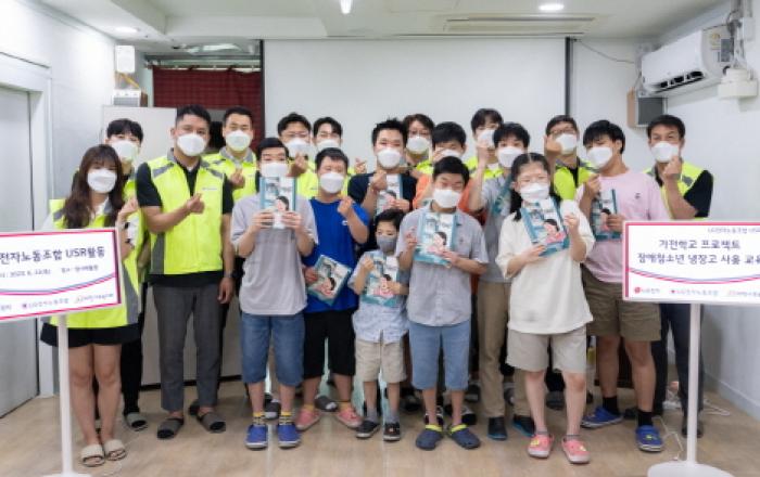 LG전자와 LG전자노동조합이 뜻을 모아 국내·외 어린이들에게 따뜻한 마음을 전했다. LG전자 임직원들로 구성된 라이프스굿(Life's Good) 봉사단은 22일 서울 강동구 대한사회복지회 암사재활원을 찾아 장애아동 및 청소년들을 위한 봉사활동을 펼쳤다. LG전자