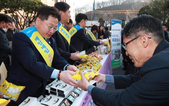 충청북도와 농협 충북지역본부는 3월 14일 백설기데이 행사로 출근길 도청 직원을 대상으로 쌀 소비 촉진 캠페인을 실시했다. 이날 행사는 쌀에 대한 관심도 제고 및 소비 활성화를 위해 3월 14일 화이트데이에 사탕 대신 우리 쌀 백설기를 선물하는 건강한 기념일로 지