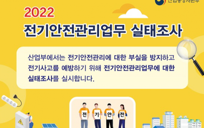 산업통상자원부는 전기설비 안전관리업무에 대한 부실을 방지하고, 전기안전관리 현장의 실태 파악을 위해 전기설비 사업장, 안전관리업무 위탁·대행사업자 등 500곳을 대상으로 내달 30일까지 실태조사를 벌인다고 21일 밝혔다. 실태조사는 전기안전관리법 제29조에 따라