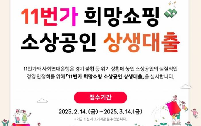 함께만드는세상(사회연대은행)은 11번가와 협력해 2024년에 이어 2025년에도 ‘11번가 희망쇼핑 소상공인 상생대출’ 사업을 계속 이어간다. 본 사업은 11번가에 입점한 소상공인을 대상으로 무이자 긴급자금을 지원해 경기 불황 등으로 인한 경영 위기를 겪는 소상공인의