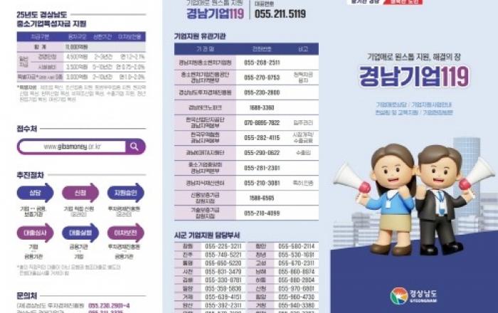 경상남도는 ‘경남기업119’ 누리집을 통해 올해 중앙부처·도·시군의 기업지원사업을 안내하고 도내 기업의 애로사항 해결을 적극 지원한다고 밝혔다.‘경남기업119’는 도내 기업의 애로사항을 원스톱으로 지원하는 온라인 플랫폼이다. 각종 기업지원사업을 한 곳에서 볼 수 있고,