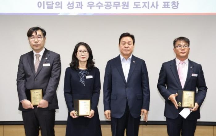 박완수 경남도지사는 4일 오전에 개최한 실국본부장회의에서 ‘이달의 성과 우수공무원’에게 직접 표창장을 수여하고 격려했다.‘이달의 성과 우수공무원’은 도민이 체감할 수 있고 도정 발전에 실질적인 성과를 거둔 직원에 대해 도지사 표창과 인사 가점 등 인센티브를 부여함으로써