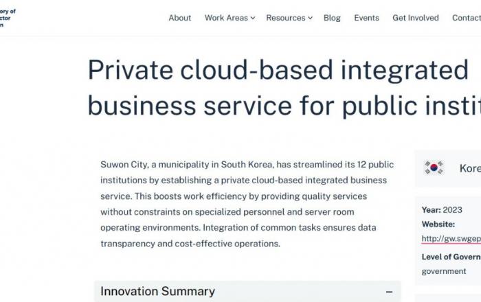 수원시가 개발한 ‘민간 클라우드 기반 공공기관 통합업무서비스’가 경제개발협력기구(OECD) 공공혁신협의체(OPSI)가 공모한 2023년 공공서비스 혁신(Call for Innovation in Public Service) 부문 우수사례로 선정됐다. OECD OPSI는