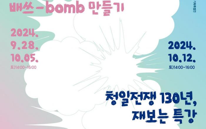 인천광역시 시립박물관은 9월 28일부터 10월 12일까지 매주 토요일, ‘청일전쟁 130년, 다시 재(再)보다’ 전시와 연계한 프로그램을 진행한다고 밝혔다.전시 연계 프로그램은 가족, 청년, 성인 등 다양한 대상이 전시를 폭넓게 즐길 수 있도록 ‘청일전쟁 폭발, 배쓰-