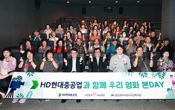 HD현대중공업과 HD현대1%나눔재단이 나들이가 어려운 지역 취약계층 어르신들에게 영화관으로 떠나는 행복한 하루를 선물했습니다.HD현대1%나눔재단은 최근 동구노인복지관 및 전하분관, 방어진노인복지관, 남목노인복지관에 현대시네마(현대예술관 영화관) 영화 관람권 620매를