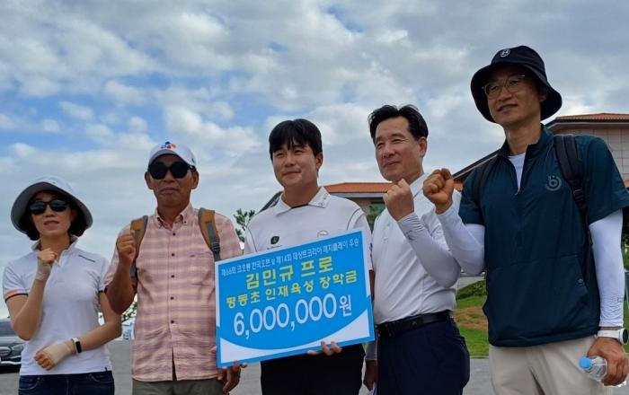 한국남자프로골프(KPGA) 투어에서 활약하고 있는 프로골퍼 김민규 선수가 7일 모교인 평동초등학교에 인재육성 장학금을 전달했다.김 선수는 모교 후배들의 학업을 지원하기 위해 2024년 KPGA 우승 상금 중 600만원을 기탁했다.장학금은 김민규 선수의 프로 투어