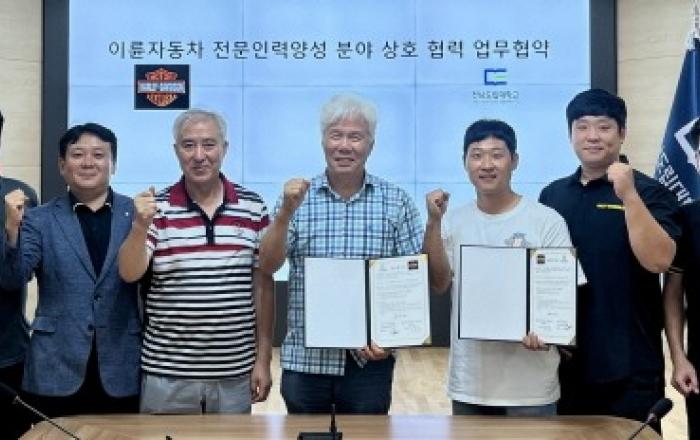 전남도립대학교는 이륜자동차 부품 개발 및 정비기술 전문인력 양성을 위해 할리데이비슨코리아 광주점과 지난 20일 업무협약을 했다고 밝혔다.업무협약 주요 내용은 이륜자동차정비기능사 국가기술자격 신설에 대비해 ▲이륜자동차 분야의 공동연구 ▲전문인력 양성을 통한 정비에 대한