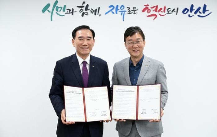 안산시는 지난 24일 오후 시청에서 신안산대(총장 지의상)와 '경기경제자유구역 안산 사동(ASV) 지구 글로벌 비즈니스 클러스터 조성을 위한 업무협약'을 체결했다고 25일 밝혔다. 이번 협약은 안산시에서 민선8기 역점시책으로 추진하고 있는 안산 사동(ASV) 지구