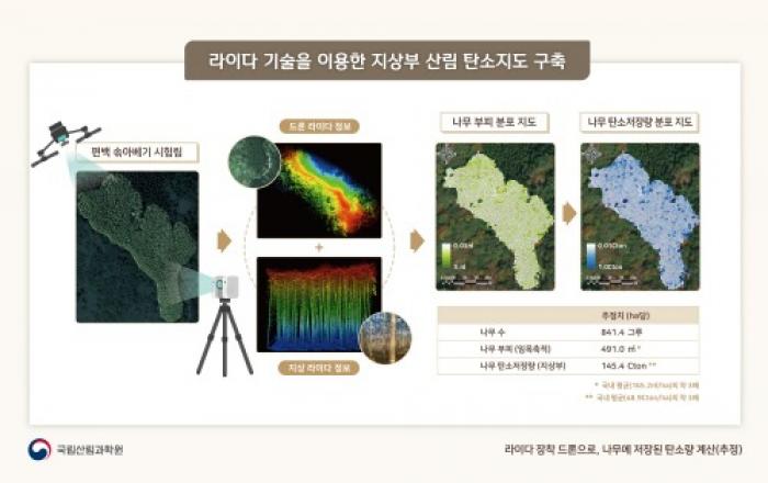 산림청 국립산림과학원은 고창 문수산에 위치한 편백 솎아베기 시험림을 대상으로 드론라이다* 기술을 활용하여 나무 한 그루당 임목축적량과 탄소저장량을 알 수 있는 탄소지도를 제작했다고 밝혔다. 이번에 공개한 편백림의 지상부 탄소지도는 지난 20년간