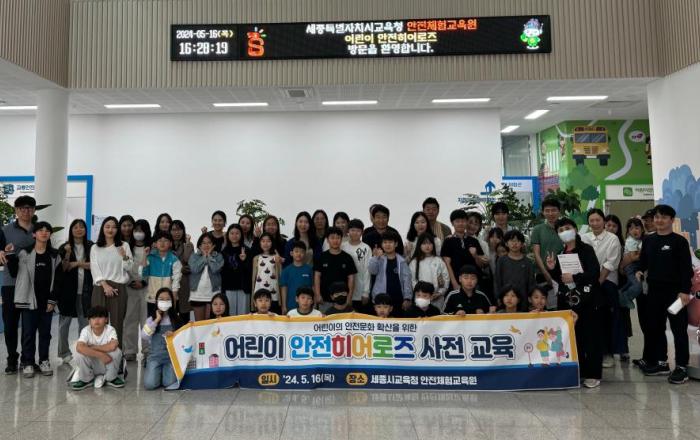 세종특별자치시가 지난 16일 안전체험교육원(조치원)에서 ‘어린이 안전히어로즈(Heros)’ 사전교육을 진행했다. ‘어린이 안전히어로즈’는 어린이들이 스스로 학교 주변의 위험 요소를 발굴·신고하는 범정부 사업이다. 세종시 어린이 안전히어로즈는 지난 4