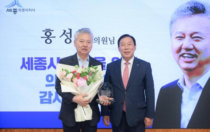 최민호 세종특별자치시장이 29일 제21대 세종시 국회의원의 임기를 마감하는 홍성국 의원에게 그동안의 의정활동에 대한 성과와 헌신적인 노력에 감사하는 감사패를 전달했다. 홍성국 의원의 이번 세종시청 방문은 지난 2020년 5월 30일 세종시갑 지역구 국회