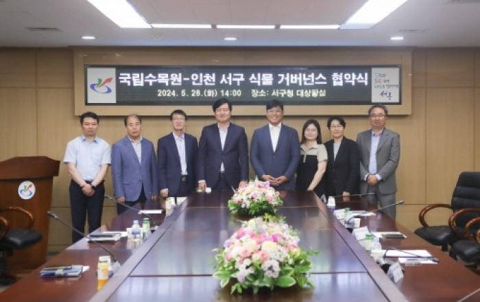 산림청 국립수목원은 5월 28일(화) 인천 서구청 관계자들과 함께「식물 거버넌스 협약」을 체결하였다. 이번 협약은 국립수목원과 인천 서구청 간 ▲식물자원 보전을 위한 공동 협력, ▲정원 조성에 관한 기술 검토 및 자문, ▲정원산업 및 정원식물에