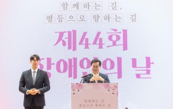 김동연 경기도지사는 18일 경기종합노동복지회관에서 열린 ‘제44회 장애인의 날 행사(4월 20일)에 참석해 장애인 정책 5개년 계획을 발표하고, 정책의 계획단계에서부터 장애인을 우선 고려한다는 장애인 인권헌장을 실천하겠다고 약속했다. 김 지