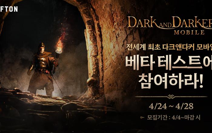 (주)크래프톤이 산하의 크리에이티브 스튜디오 블루홀스튜디오가 개발 중인 신작 ‘다크앤다커 모바일(DARK AND DARKER MOBILE)’의 첫 대규모 테스트를 24일 시작한다. 다크앤다커 모바일의 베타 테스터 모집은 공식 홈페이지의 신청 링크를 통해 누구나