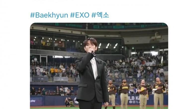 그룹 엑소(EXO) 멤버 겸 솔로 아티스트 백현(BAEKHYUN)이 메이저리그 개막전을 빛냈다. 백현은 지난 21일 서울 고척스카이돔에서 열린 'MLB(메이저 리그 베이스볼) 월드투어 서울 시리즈 2024' LA 다저스와 샌디에이고 파드리스의 경기에 참여했다. 이날 백