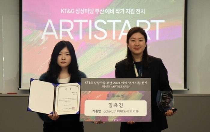 KT&G 상상마당 부산이 지역 신진작가 지원 전시회 '제4회 ARTISTART(아티스타트)' 전시작 중 우수작품을 선정하는 시상식을 지난 21일 개최했다. 시상식은 KT&G 사회공헌실장 심영아 상무와 전시회 참여 작가 등이 참석한 가운데 상상마당 부산에서 진행됐다