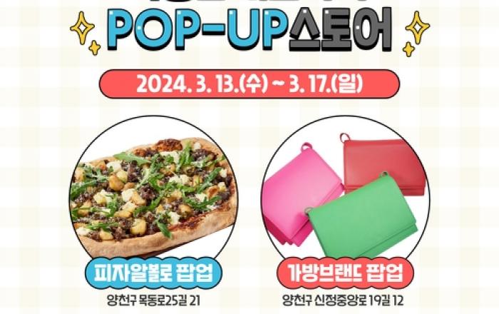 양천구는 3월 13일부터 17일까지 5일간 목동역 인근 목동로데오거리 공실 점포 두 곳을 활용해 피자와 가방을 주제로 로컬브랜드가 참여하는 '체험형 팝업스토어'를 개장한다고 밝혔다. 목동로데오 골목형 상점가 상인들의 제안으로 이번에 시범 도입된 '체험형 팝업스토어'