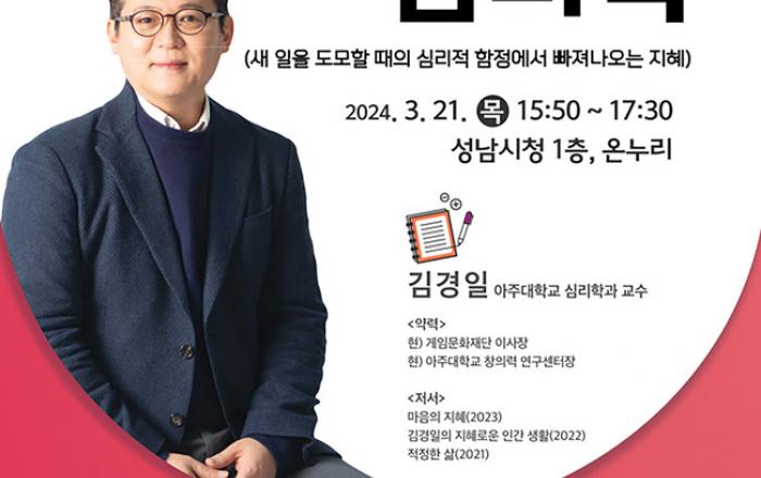 성남시는 올해 첫 ‘ 희망성남 토크콘서트 ’ 강연자로 김경일 아주대학교 심리학과 교수를 초빙해 오는 3 월