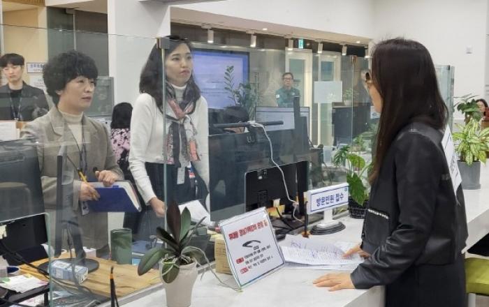 경기도는 22일 경기도청 열린민원실에서 광교지구대와 합동으로 40여명이 참여한 가운데 ‘2024년 상반기 특이민원 발생 대비 모의훈련’을 실시했다. 이번 모의훈련은 민원인 응대 과정에서 발생할 수 있는 폭언·폭행 등의 비상상황에 효과적으로 대처