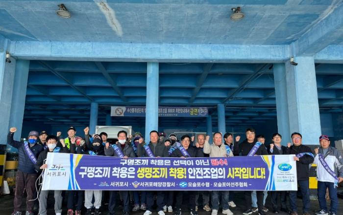 서귀포시는 지난 20일 주요 어선 기항지인 서귀포항·성산포항·모슬포항에서 서귀포시 주관으로 서귀포해경·지구별수협·어선주협회와 함께 어선 조업 시 안전사고 예방 캠페인을 대대적으로 실시하였다고 밝혔다.이번 캠페인은 최근 잇따른 어선 전복·침몰사고로 인하여 인명피해가 발생