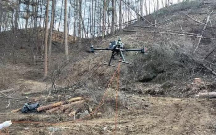 산림청 국립산림과학원은 3월 19일(화), 광릉산림과학연구시험림에서 목재수확작업의 생력화를 위해 섬유로프 및 드론을 활용한 가선집재장비의 설치 기술을 선보였다. 경사가 급한 산지에서 안전하게 목재를 수확하기 위해서는 가선집재시스템(공