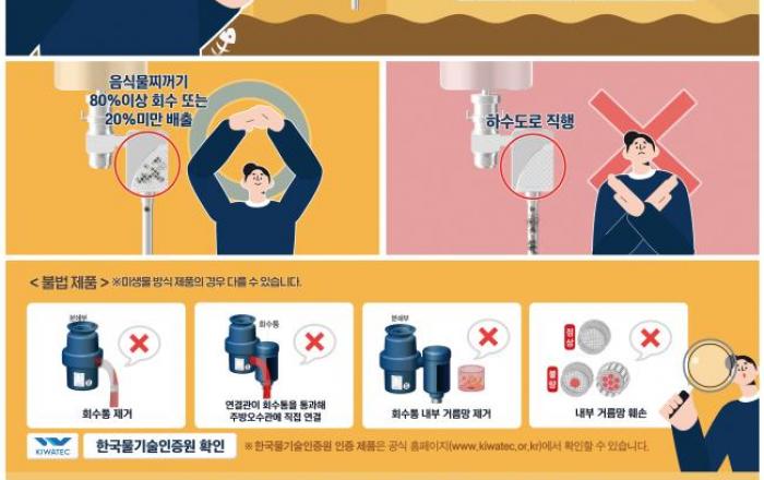 세종특별자치시가 수질오염의 원인 중 하나인 ‘불법 주방용 오물분쇄기 제조·판매 및 사용 근절’을 위한 지도·점검에 나선다. 불법 주방용 오물분쇄기를 사용하면 음식물 찌꺼기가 전량 하수도로 배출돼 하수도 막힘과 수질오염을 초래하는 등의 피해가 발생한다. 불법 오물