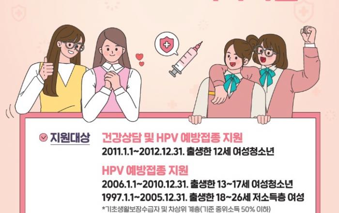 질병관리청은 사람유두종바이러스(Human Papillomavirus, 이하 ‘HPV’) 감염증 예방을 위해 국가예방접종 지원 대상자는 겨울방학을 활용해 예방접종을 받기를 당부했다. HPV 백신은 관련 암을 예방할 수 있는 의약품으로, HPV 감염에 의해 발생하는