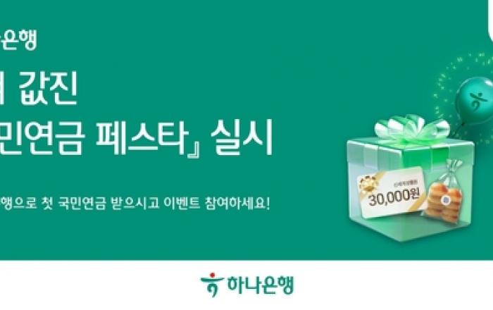 하나은행은 내년 3월 29일까지 국민연금 신규 수급 손님을 대상으로 '더 값진 국민연금 페스타' 이벤트를 실시한다고 밝혔다. 이번 이벤트는 2024년부터 국민연금을 수령하는 1961년 1월에서 3월 출생 손님들이 참여 대상이다. 먼저, 이벤트 기간 중 하나은행 모바