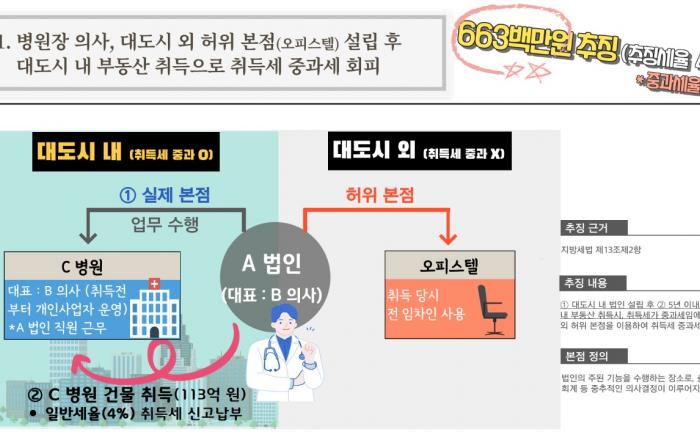 경기도가 법인의 본점 주소지를 대도시 밖으로 등재하고 실제로는 대도시 내에서 본점 업무를 수행하면서 부동산을 취득해 취득세 중과세를 탈루한 11개 법인을 적발해 146억 원을 추징했다. 류영용 경기도 조세정의과장은 22일 경기도청에서 기자회견을