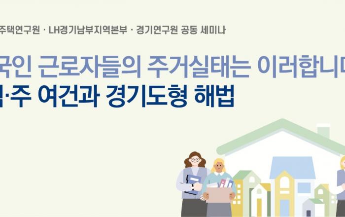 경기연구원이 22일 한국토지주택공사(LH) 경기남부지역본부(분당) 3층 대회의실에서 LH토지주택연구원, LH경기남부지역본부와 공동으로 ‘외국인 근로자들의 주거실태는 이러합니다: 직·주 여건과 경기도형 해법’이라는 주제로 공동 세미나를 개최했다.