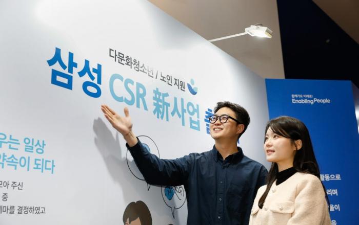 삼성이 다문화청소년, 노인 등 사회적 약자와 함께 하는 새로운 CSR 사업을 시작한다. 제일기획과 에스원 등 9개 삼성 관계사 는 22일 서울 송파구에 위치한 삼성물산 주택문화관 래미안갤러리에서 ‘사회적 약자 지원 CSR 신사업 ’ 출범식을 열었다.