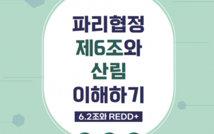 산림청 국립산림과학원은 파리협정 체제에서 산림부문이 국제사회 기후위기 대응에 기여하는 방안을 알기 쉽게 설명한 ‘파리협정 제6조와 산림 이해하기: 6.2조와 REDD+’를 발간했다고 밝혔다. *국외산림탄소배출감축사업(REDD+): 산림전용과 산림황