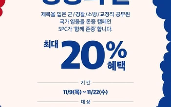 SPC는 계열사 전 매장에서 제복근무자(MIU, Men In Uniform)에게 혜택을 제공하는 '제복 입은 영웅의 달' 프로모션을 오는 9일부터 진행한다고 밝혔다. 이번 캠페인은 9일 소방의 날과 지난 10월 국군의 날(1일), 재향군인의 날(8일), 경찰의 날(