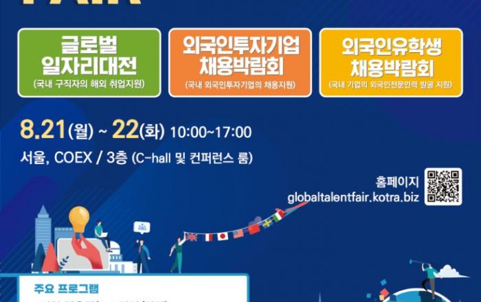 한국산업인력공단(이하 ‘공단’)은 해외취업을 희망하는 청년들을 지원하기 위해 21일과 22일 양일간 서울 코엑스에서 코트라, 서울특별시, 국립국제교육원, 금융감독원 등과 ‘글로벌 탤런트 페어(GLOBAL TALENT FAIR)’를 공동 개최한다. 글로벌 탤런트 페어