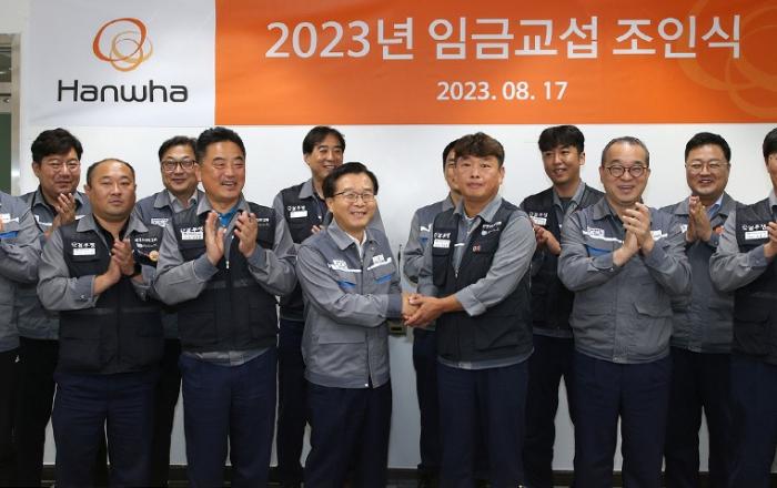한화오션이 출범 후 첫 노사협상을 성공적으로 마무리하고 생산에 전념할 수 있게 됐다. 한화오션 노사는 17일 2023년 임금교섭 타결 조인식을 가졌다. 이날 조인식에는 한화오션 권혁웅 대표이사와 정상헌 지회장 등 노사 교섭위원들이 참석했다. 한화오션 노사는 현재