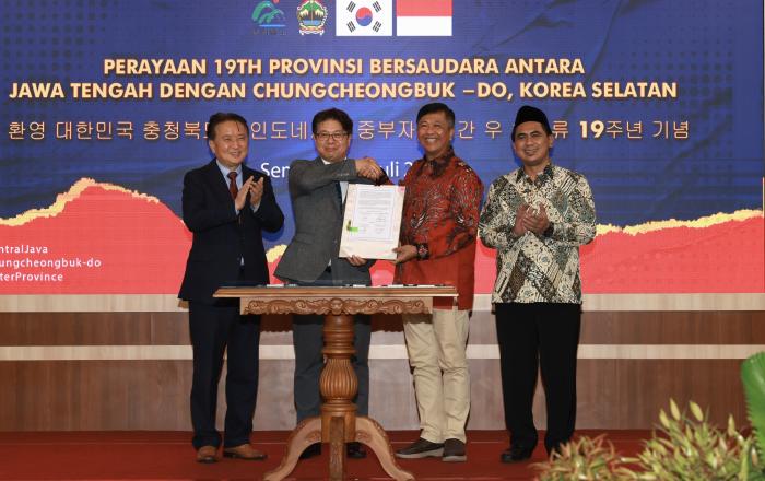 충청북도와 자매지역인 인도네시아 중부자바주가 그간 20여년의 우호관계를 바탕으로 중앙정부 차원의 양국간의 관계 격상에 발맞춰 양 지역간 교류협력 관계를 확대·강화하는 양해각서를 체결했다. 김영환 충북지사와 간자르 프라노워 주지사는 6일 중부자바주 청사에서 개최된 협