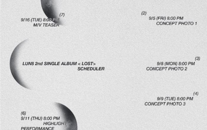 그룹 루네이트(LUN8, 판타지오 소속)가 본격적인 컴백 카운트다운에 돌입했다.루네이트는 지난 3일 오후 공식 SNS를 통해 두 번째 싱글 앨범 ‘LOST’(로스트)의 스케줄러 이미지를 공개했다.이미지는 달의 공전 궤도를 형상화한 감각적인 디자인으로 시선을 사로잡는다.