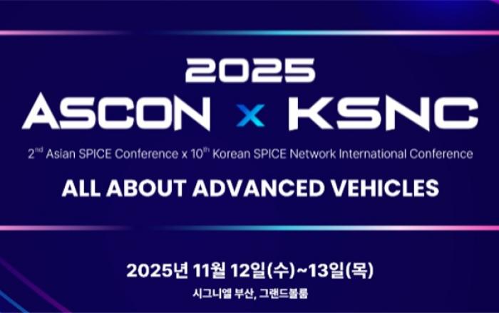 한국첨단자동차기술협회는 오는 11월 12일(수)부터 13일(목)까지 양일간 부산 시그니엘 그랜드볼룸에서 ‘KSNC x ASCON 2025’를 개최한다고 밝혔다. 이번 행사는 KSNC(Korean SPICE Network Conference) 개최 10주년을 맞아 ASC