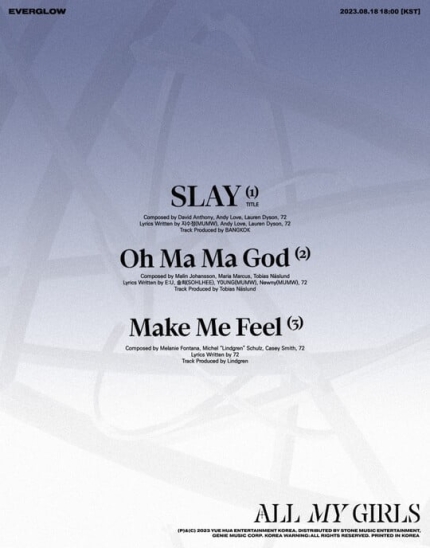 제목부터 강렬한 타이틀곡 ‘SLAY’에는 1년 8개월의 공백을 깨고 컴백하는 에버글로우의 남다른 포부가 담겼다. 유니크하면서도 파워풀한 멤버들의 에너지와 그룹 특유의 진취적인 서사를 예고해 기대감을 높인다.