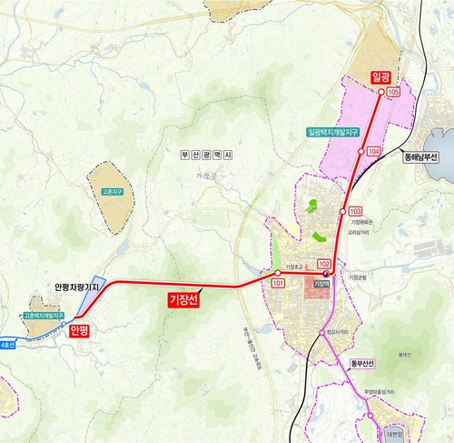 도시철도 기장선은 부산4호선(안평) 노선연장을 시작으로 기장역(동해선)을 경유해 일광신도시까지 약 7.1㎞ 구간으로 부산4호선·기장역(동해선)·일광지구 연계로 단절된 동부산권 도시철도 네트워크 연결을 도모하기 위한 철도계획이다.