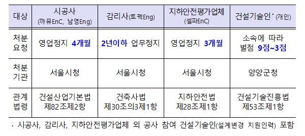 '유사사고 재발방지 방안' 토대로 개선 추진...시공사 영업정지 4개월 등 처분 요청