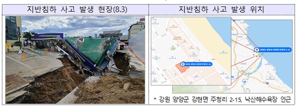 이번 양양군 지반침하 사고를 계기로 해안가 등 연약지반 개발 사업은 일반 지역과 차별화해 안전 관리를 보다 강화하고 최근 기후변화와 노후 지하시설물 증가 등 제반여건 변화를 고려해 지하안전관리 전반에 대해 개선을 추진한다.