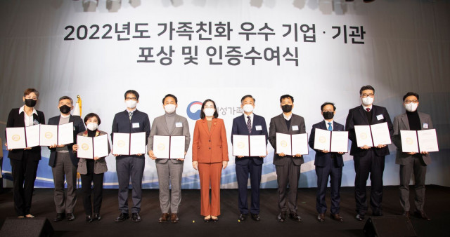 이와 함께 대웅제약은 14일 여성가족부 주관 가족친화기업 4회 연속 인증을 통해 ‘가족친화 최고기업’으로 지정됐다. 가족친화 인증은 ‘가족친화 사회환경의 조성 촉진에 관한 법률’에 따라 가족 친화적 경영을 모범적으로 실천하는 기업 및 기관 등에 여성가족부 장관이 인증을 부여하는 제도다. 가족친화 최고기업 인증은 가족친화인증제가 도입된 2008년 이후 15년(대기업 기준, 중소기업의 경우 12년) 동안 가족친화기업 인증을 유지한 기업에게 부여되며, 대웅제약은 제약업계 최초로 가족친화 최고기업으로 선정됐다.