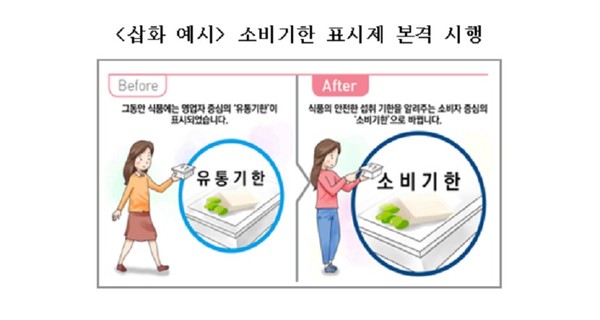 식품의 유통·판매 허용 기간을 표시하는 ‘유통기한’에서 식품에 표시된 방법을 준수할 경우 섭취해도 안전에 이상이 없는 기간인 ‘소비기한’ 표시제로 전환했다.