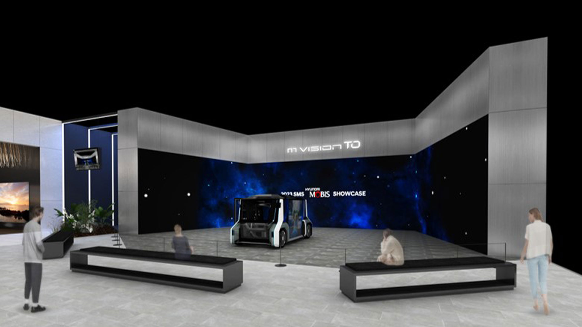 레저와 휴식 목적에 맞게 개발된 엠비전 HI도 전시된다. 차량 내부에는 자유롭게 위치와 방향을 바꿀 수 있는 의자와, 시선 인식 기술이 탑재된 대형 디스플레이를 설치했다. 시선을 돌리고 손을 움직이는 동작만으로 영화 감상이나 인터넷 쇼핑 등 원하는 콘텐츠를 편리하게 체험할 수 있다.